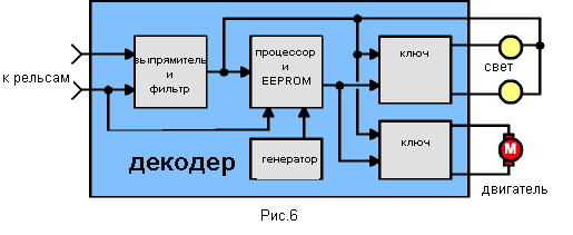 локомотив имеет небольшой компьютер (“декодер”,”дешифратор”),